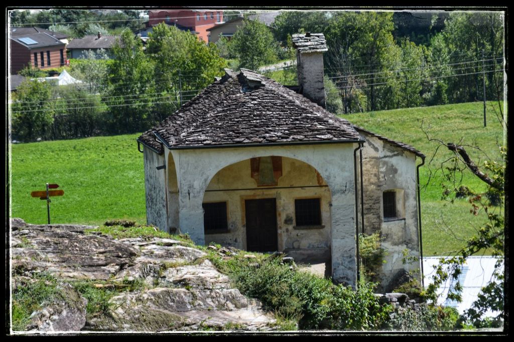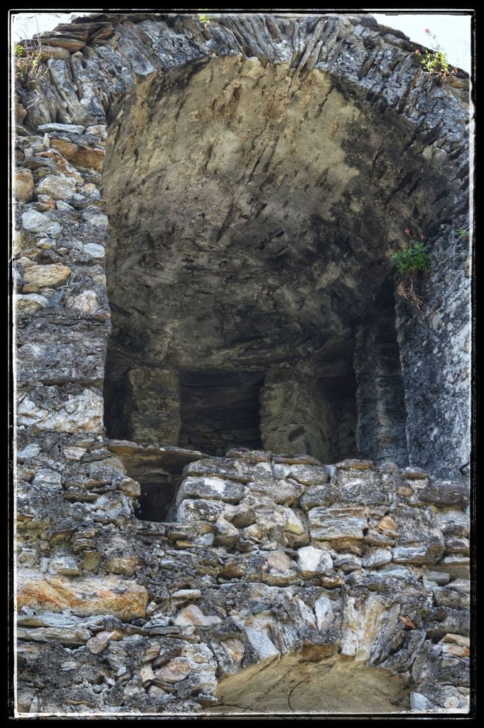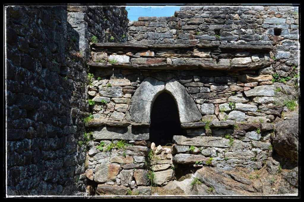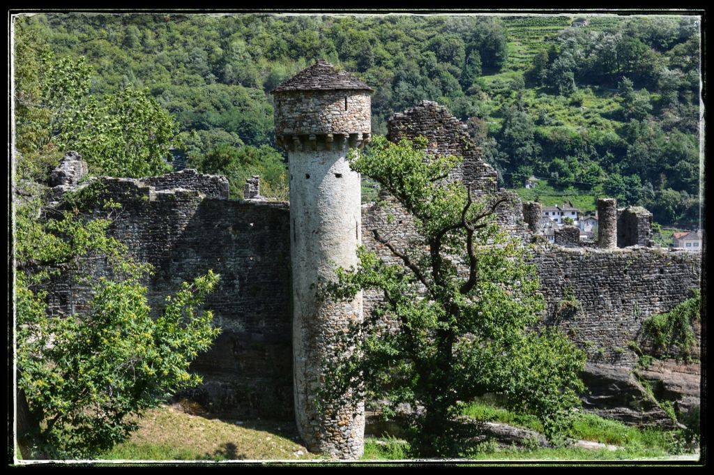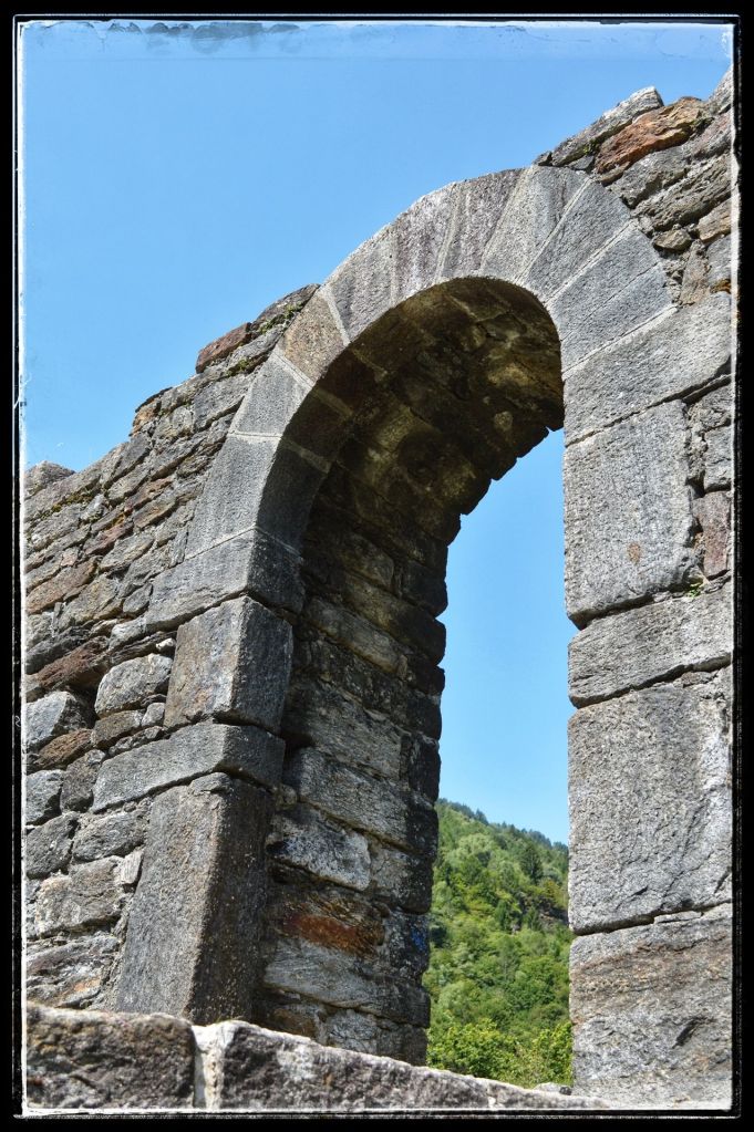 Sommige bezoeken lijken extra verankerd te zijn in mijn herinneringen, zoals deze ruïne. Mijn dochter en ik waren samen naar Zwitserland gereisd om mijn moeder op te halen die daar bij vrienden verbleef. Dan is het natuurlijk wel zo leuk om er gelijk een paar dagen aan vast te knopen en dus werd het een mini trip. Mijn moeder genoot overdag van de gastvrijheid van haar vrienden en dochterlief en ik gingen elke dag de schitterende omgeving van AquaRossa verkennen. ‘Dan moet je wel de ruïnes van Serravalle bekijken’ zei mijn moeder. We kregen een uitleg hoe er te komen, nadat we er vier keer langs gereden waren en niets snapten van de uitleg zagen we ineens dat de ruïne wat hoger lag, toch gevonden.