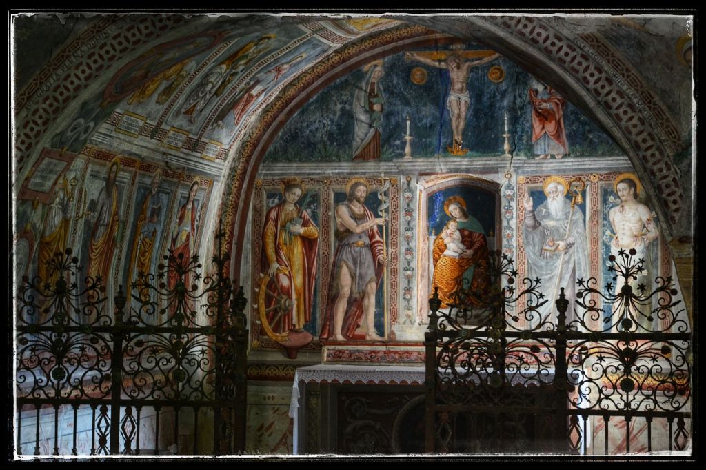 Wat het extra bijzonder maakt, is het goed bewaarde kerkje Santa Maria del Castello ernaast. Al sinds de 14e eeuw aanwezig en in de 16e eeuw prachtig gedecoreerd met fresco’s uit 1587, straalt dit kleine kapelletje een serene, bijna magische sfeer uit. Alsof de tijd hier even stilstaat tussen de oude stenen en de berglucht. Een verborgen juweel vol geschiedenis, rust en schoonheid, absoluut een van de mooiste plekjes die we in Ticino ontdekten.