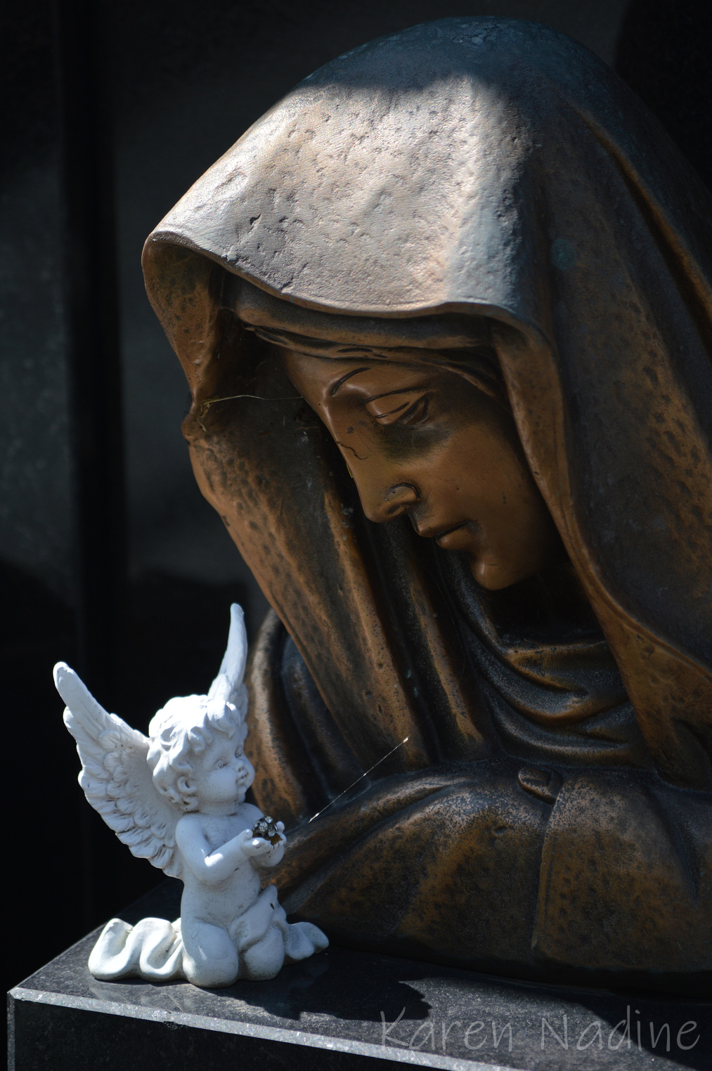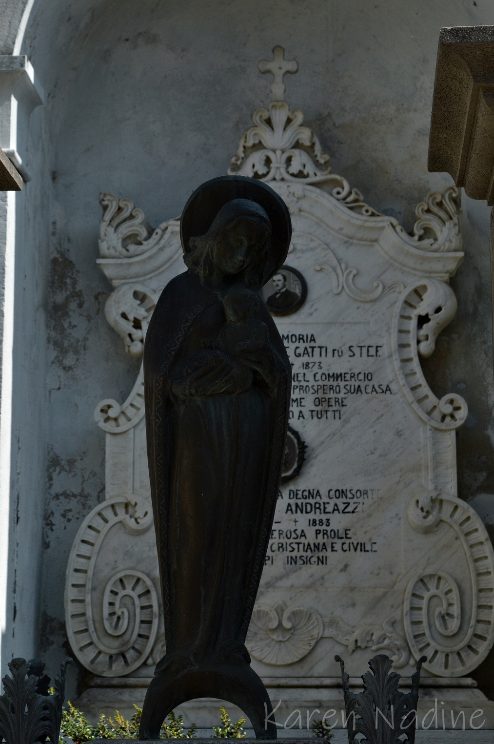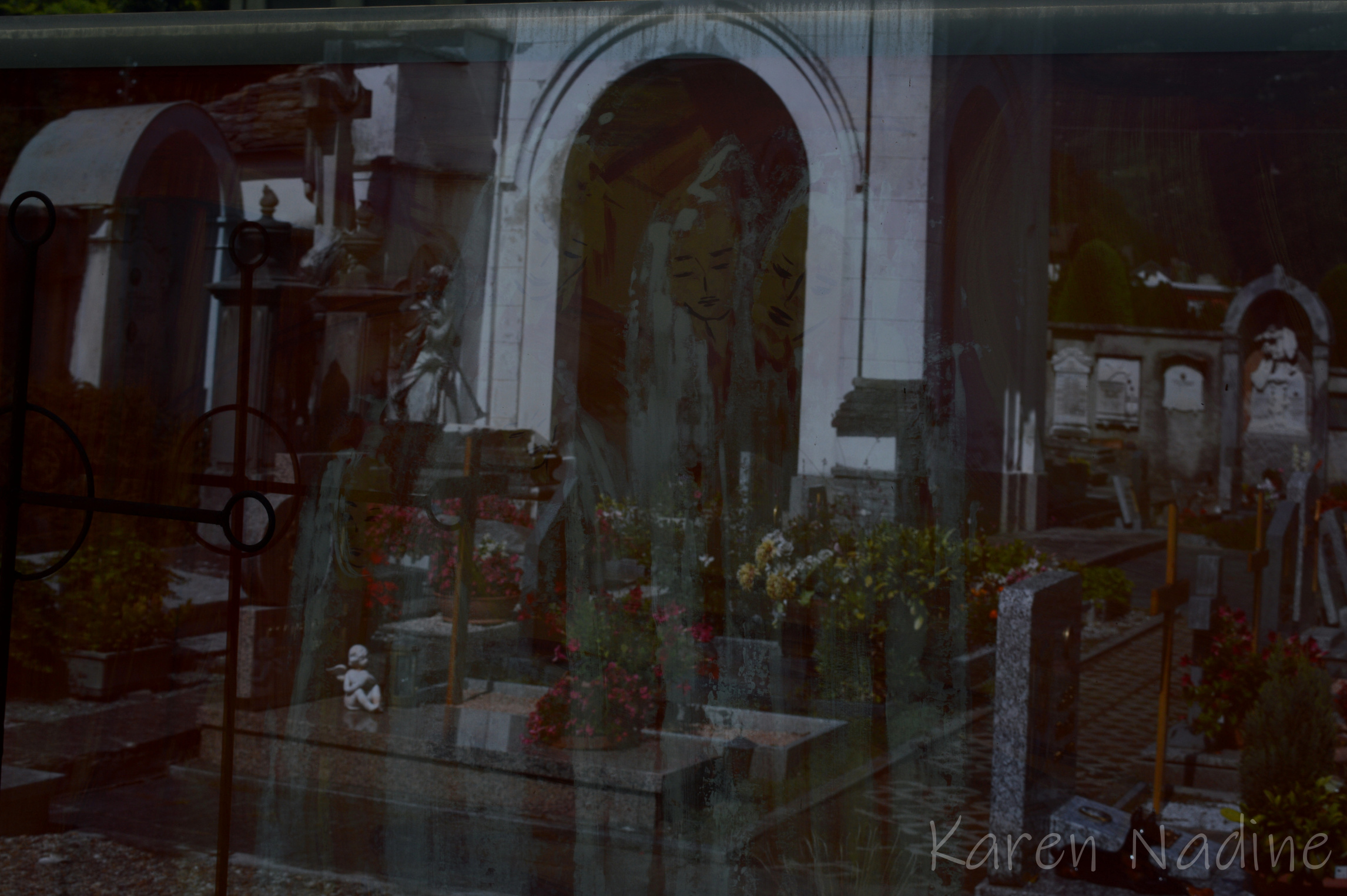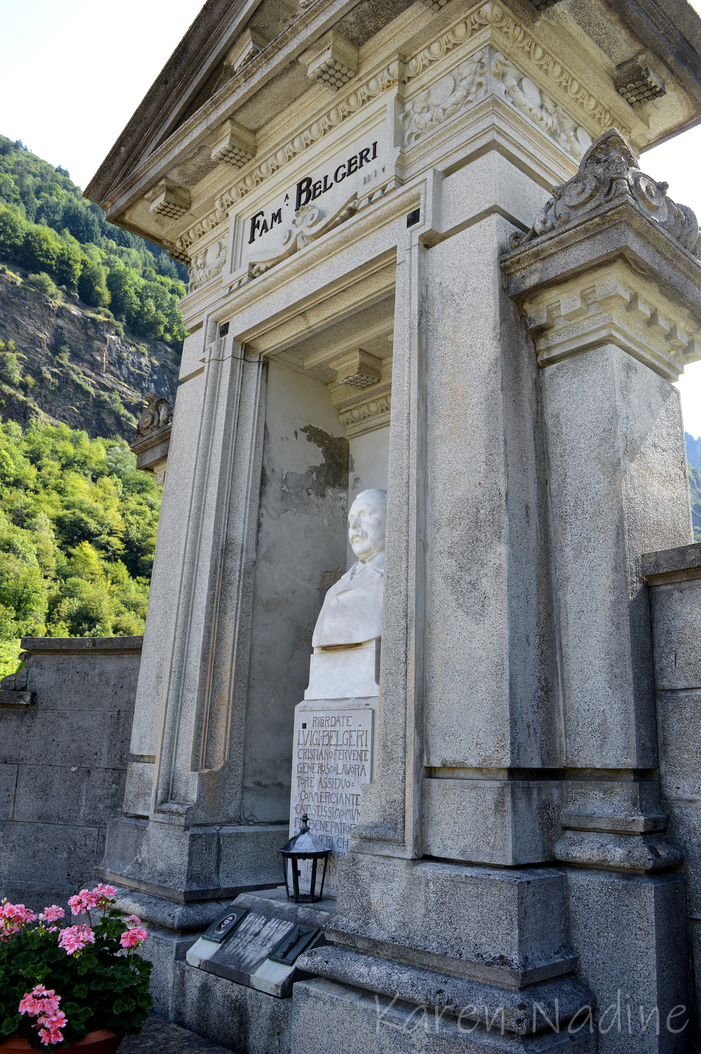 Tijdens een korte vakantie in Zwitserland had ik het genoegen samen met mijn dochter (die óók een voorliefde ontwikkeld heeft voor begraafplaats fotografie) een kleine begraafplaats in AquaRossa te bezoeken. Soms kunnen juist de kleine begraafplaatsen me verrassen met hun schat aan funeraire kunst. Dat was ook hier het geval, de grootsheid waarmee afscheid genomen was, de oudheid van de graven en in het bijzonder hoe goed ook de oude graven verzorgd werden heeft me aangenaam verrast.