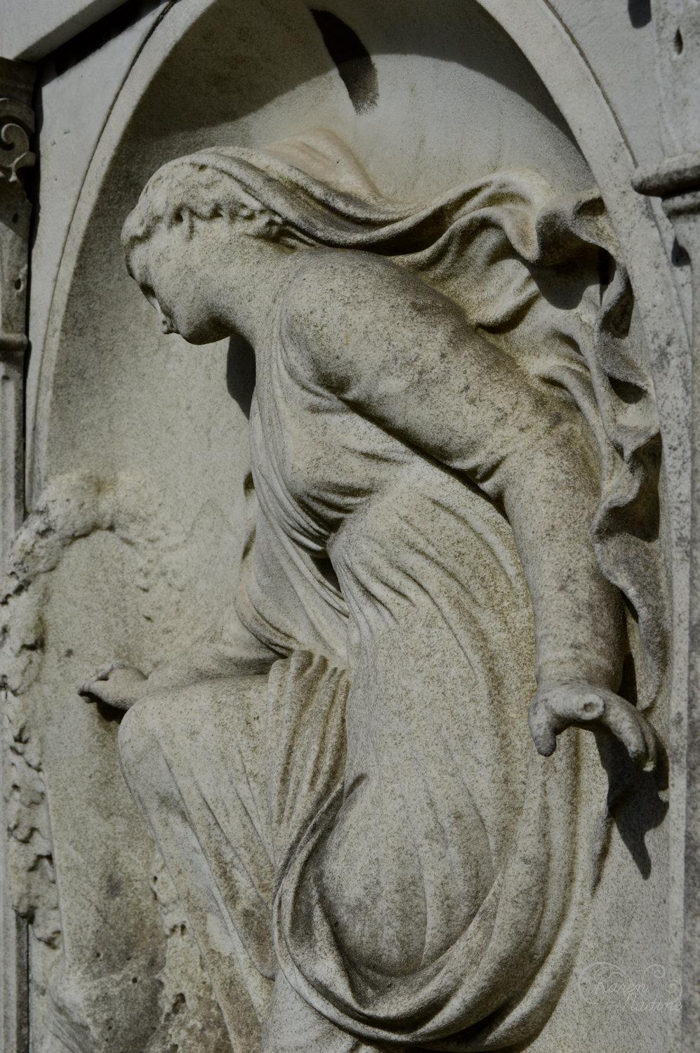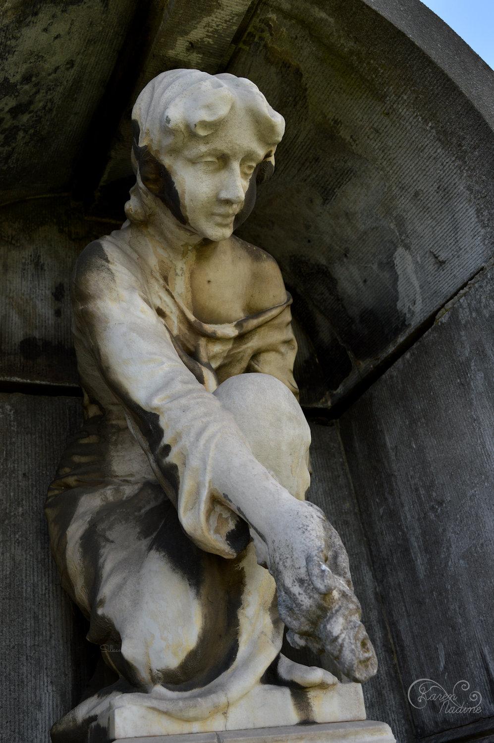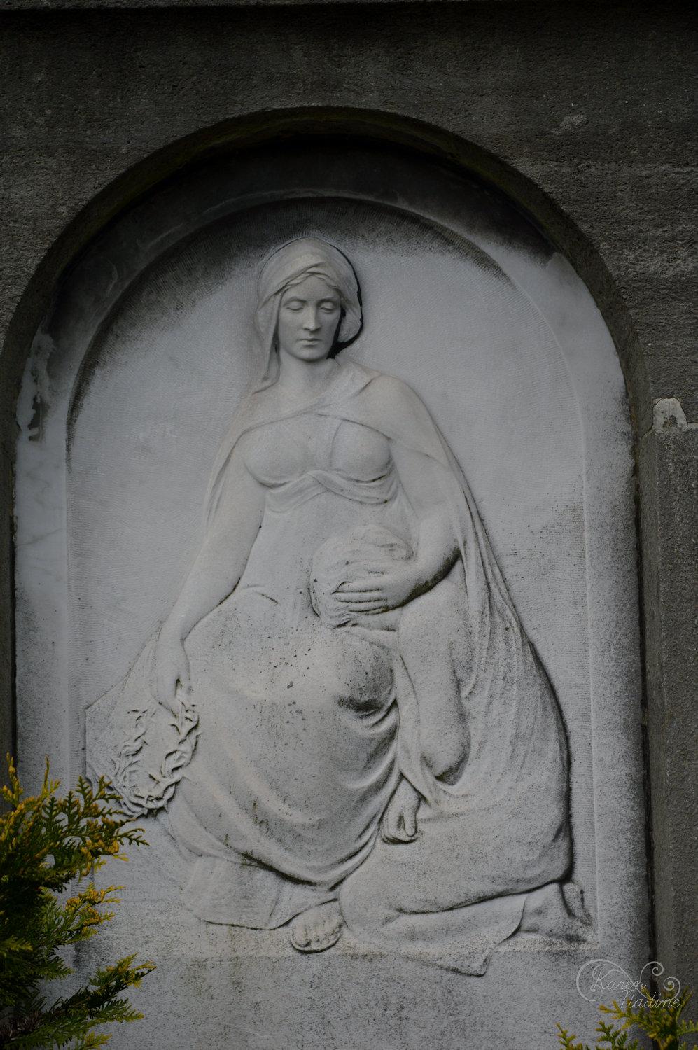 De enorme grootsheid van deze begraafplaats overviel me tijdens mijn eerste bezoek, er was zoveel om te zien. Waar te beginnen? Vaak vind ik het prettig om twee soms zelfs drie keer een rondje over een begraafplaats te wandelen, soms vind ik het prettig om een andere lens te gebruiken zonder voor elke foto lenzen te wisselen. Het was me direct duidelijk dat deze begraafplaats met zijn 82ha (!) er eentje is om vaker in tijd te bezoeken. Er schuilt iet surrealistisch in de grootse graven die oorspronkelijk ergens in de binnenstad een stadsbegraafplaats sierden nu te zien prijken op een grote verzamelplaats van graven. Dat is niet oneerbiedig bedoelt, het is wel hoe het voor mij voelde. Een deel van de karakteristieke sfeer is verdwenen, de graven zelf hebben natuurlijk hun eigen vibe, echter het totaalplaatje mist. Wat ergens ook wel weer mooi is dat door mijn bezoek aan deze begraafplaats duidelijk werd dat ik de structuur zoals die op oudere begraafplaatsen vaak te vinden is ben gaan waarderen. Mijn eerste bezoek aan deze begraafplaats was in 2016, de verzameling uit 2017 is hier te bekijken.
