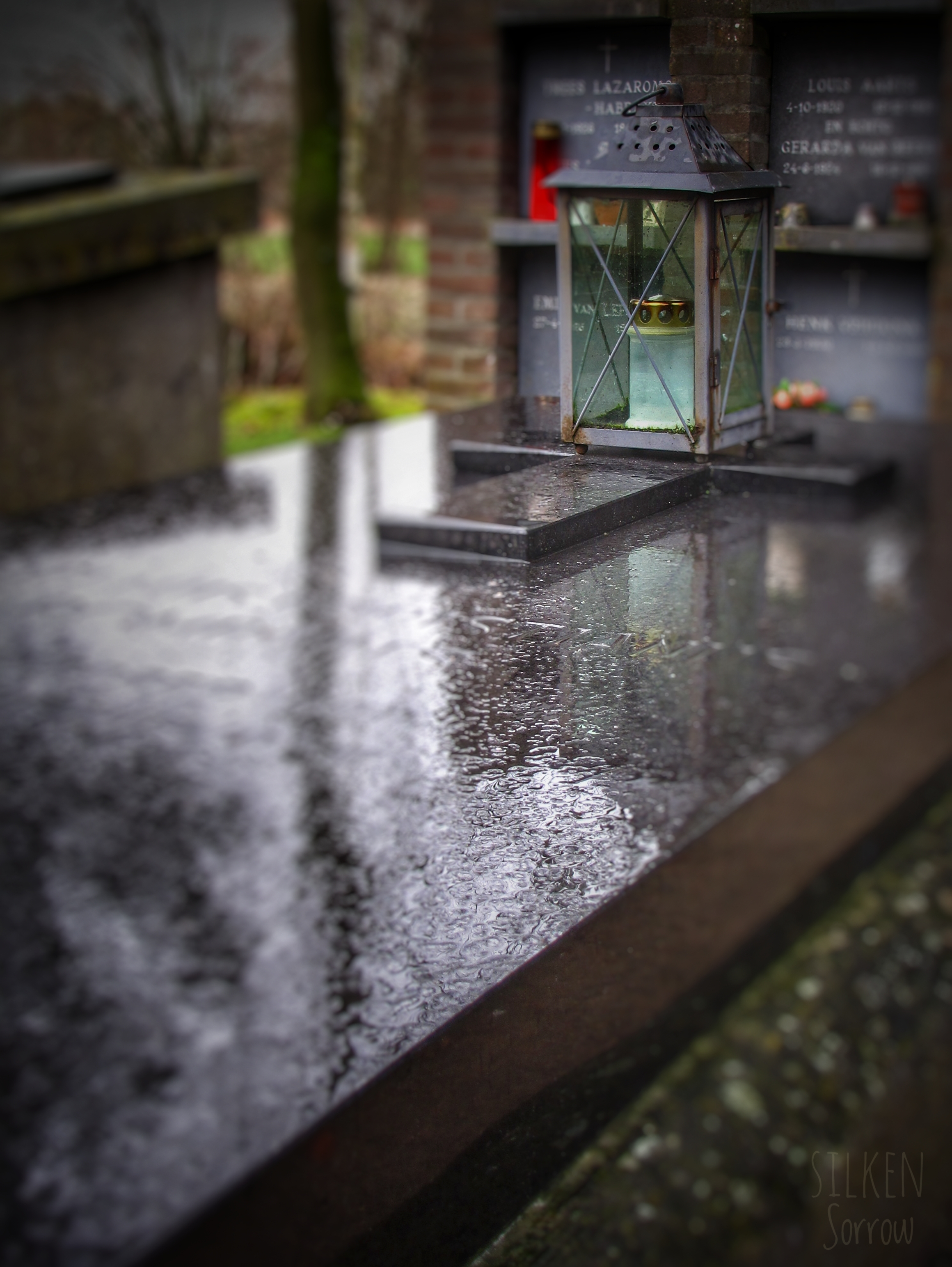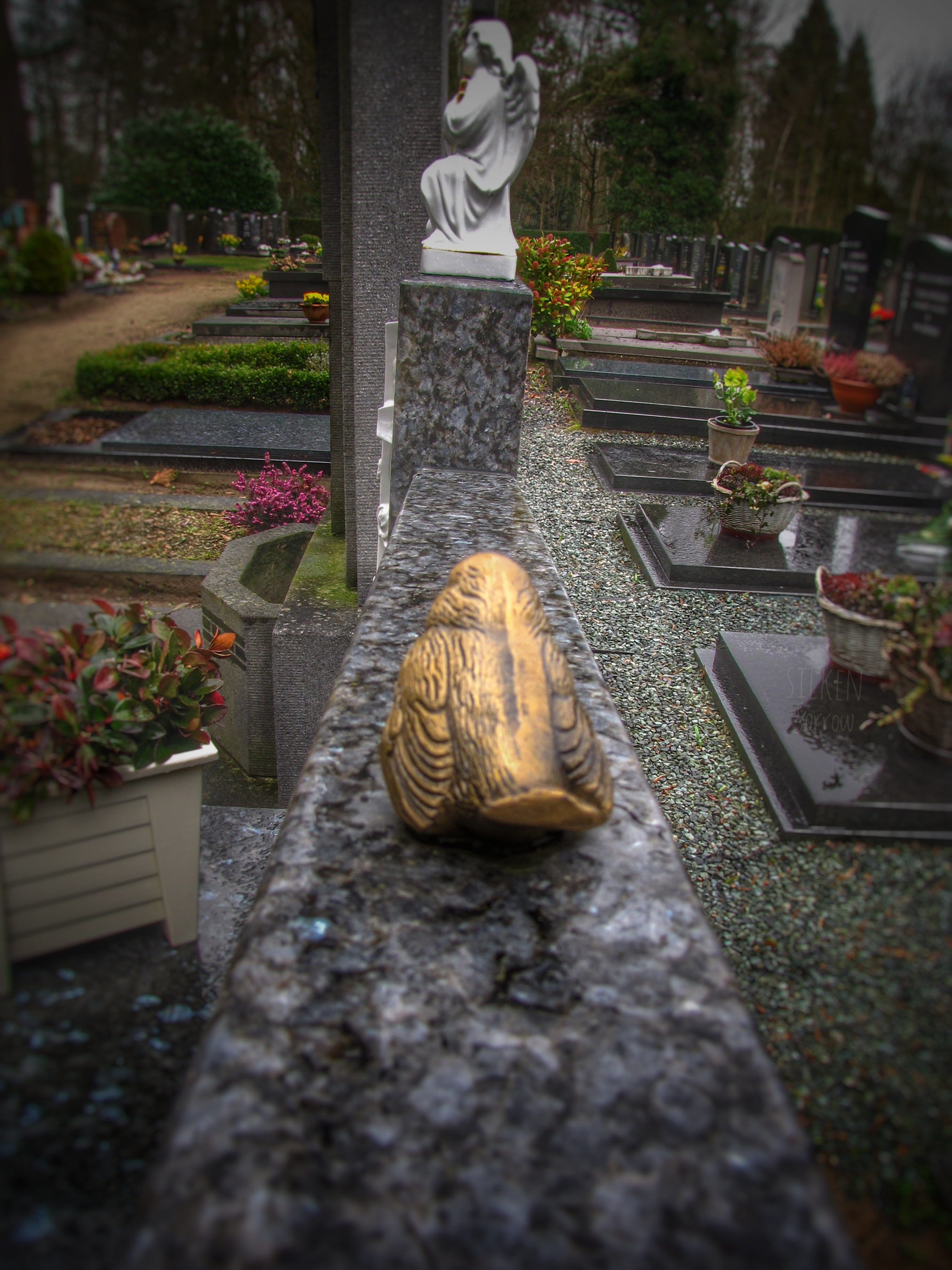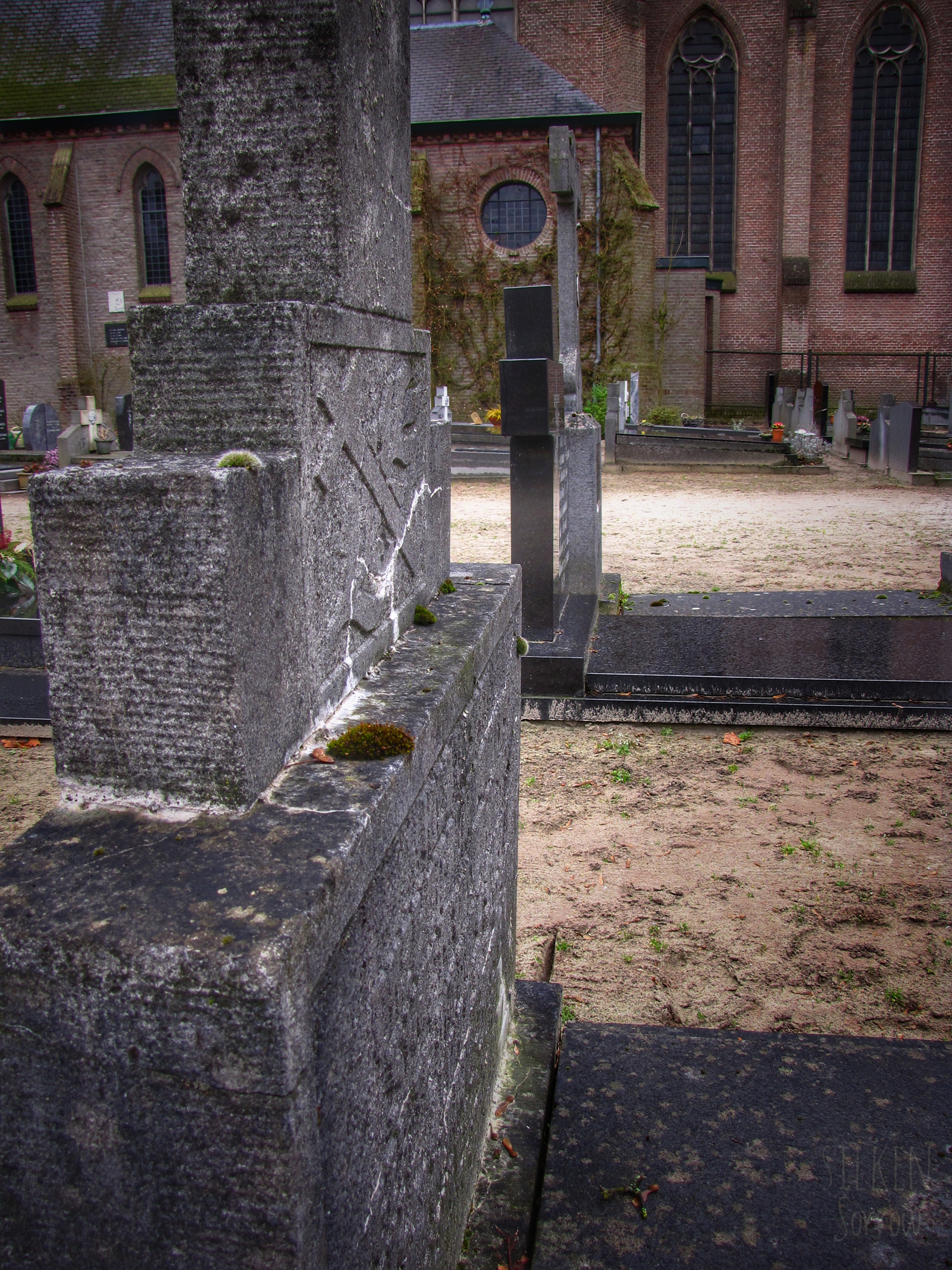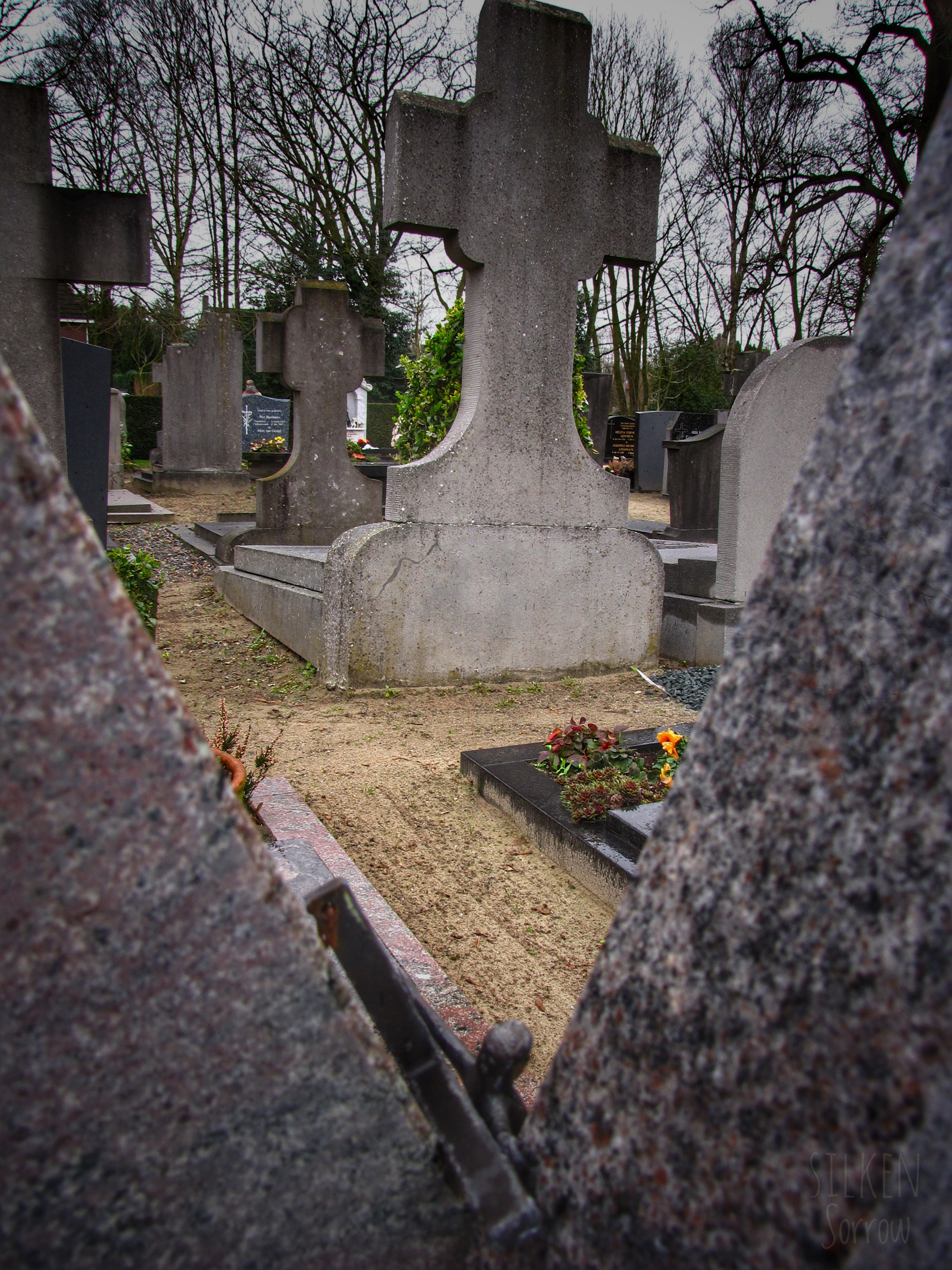 De schoonheid van datgene dat je dagelijks ziet is iets waar je gemakkelijk aan voorbij gaat. Regelmatig wandelde of fietste ik langs het kerkhof van Dommelen, op een bepaalde manier weerhield het intieme karakter me ervan om het eens te bezoeken, mét camera. Op een regenachtige dag besloot ik toch eens te gaan, ook omdat regen een zekere sfeer toe kan voegen. Ik ben blij dat ik ben gegaan, er stonden mooie en bijzondere graven, die helaas later geruimd waren. Eigenlijk vond ik mijn collectie niet de moeite waard om te delen, daar kijk ik nu anders naar. Natuurlijk ben ik door de jaren heen anders gaan fotograferen, tien jaar begraafplaatsfotografie heeft ervoor gezorgd dat mijn manier van kijken en fotograferen is veranderd. Maar juist daarom vind ik dat deze verzameling óók getoond mag worden.