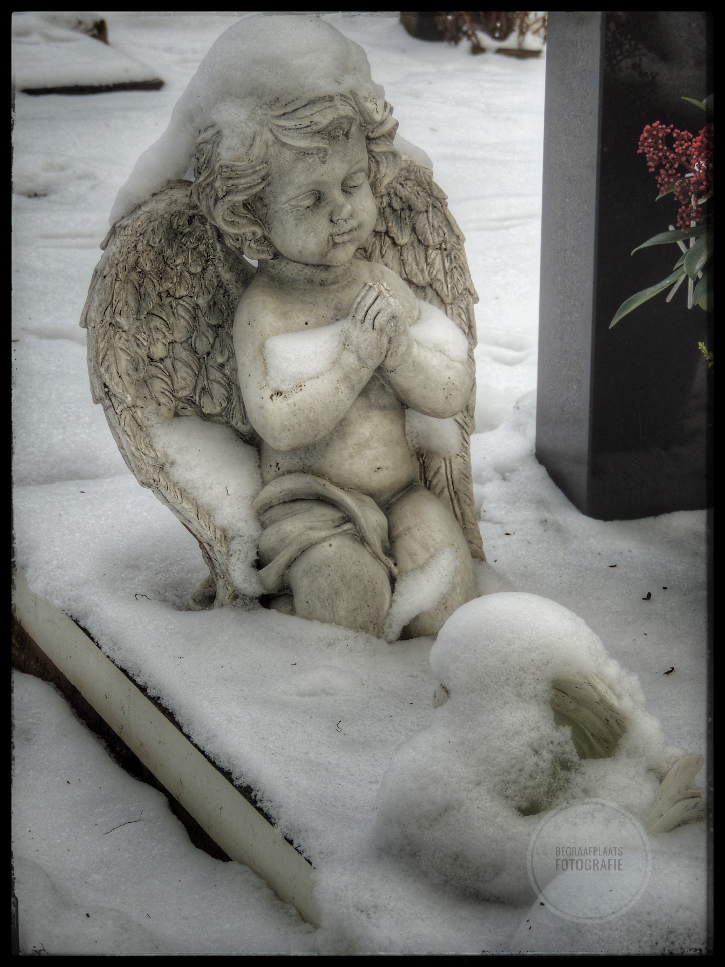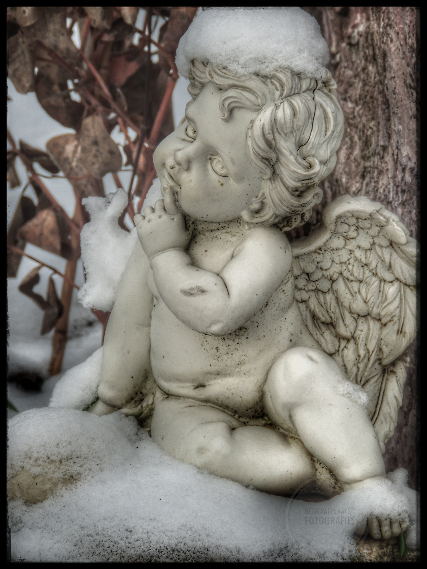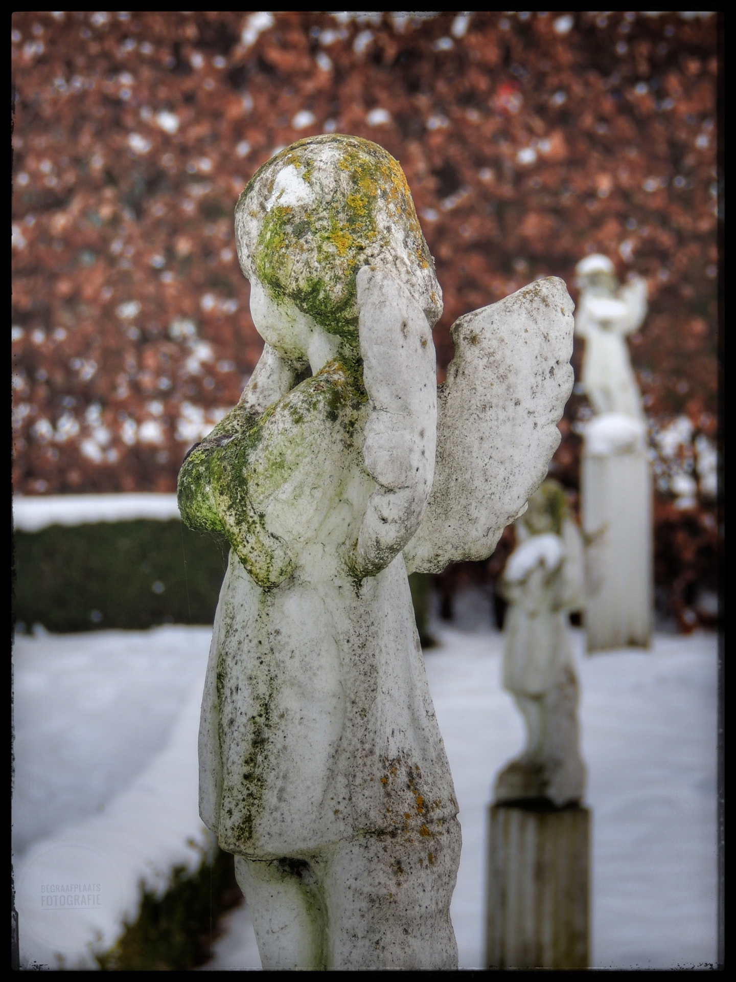 Op de ochtend dat we vertrokken voor een weekendje weg besloten manlief en ik dat we het Kerkhof in Vlierden wilden bezoeken. Het had namelijk gesneeuwd en sneeuw en begraafplaatsen zijn een magische combinatie. Helaas zijn mijn handen en vrieskoueen minder goede combinatie dus ik kan maar gedurende een korte tijd fotograferen. Maar wat een schitterende foto’s heb ik kunnen maken! Zoveel engeltjes in de sneeuw, bevroren bloemknoppen en knerpende sneeuw onder mijn laarzen.