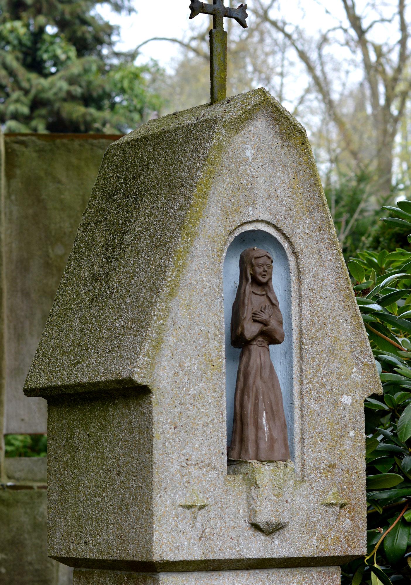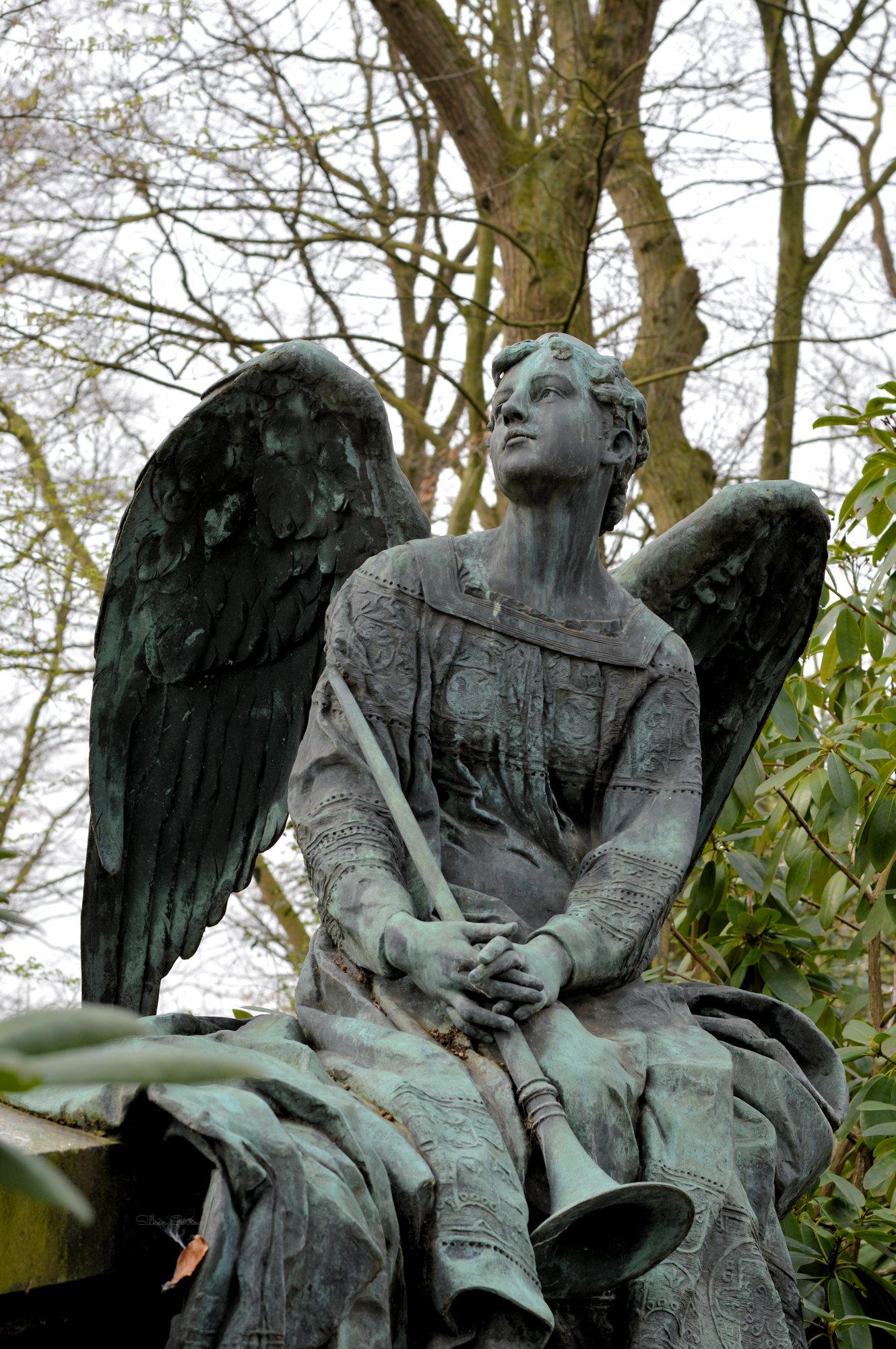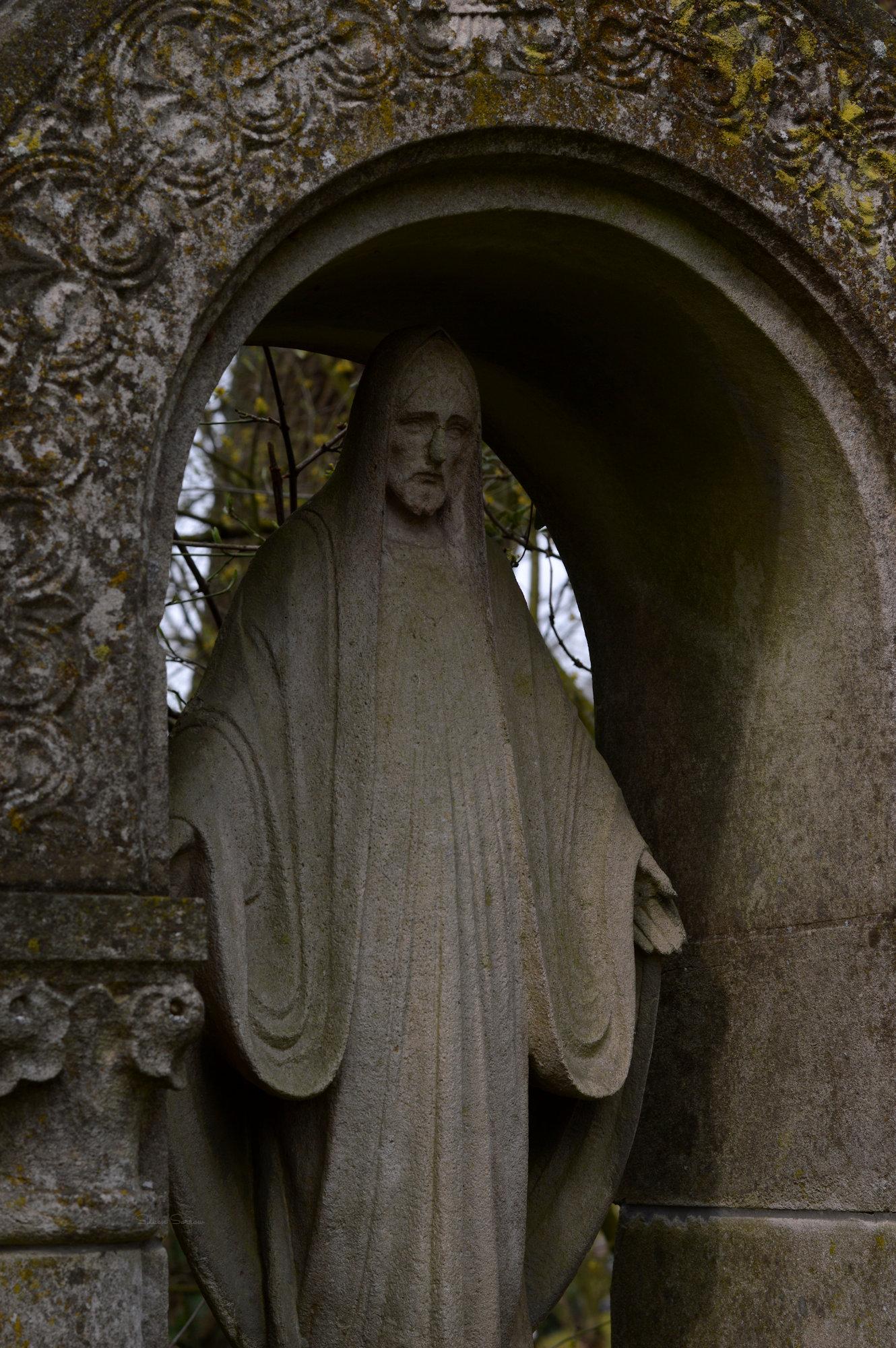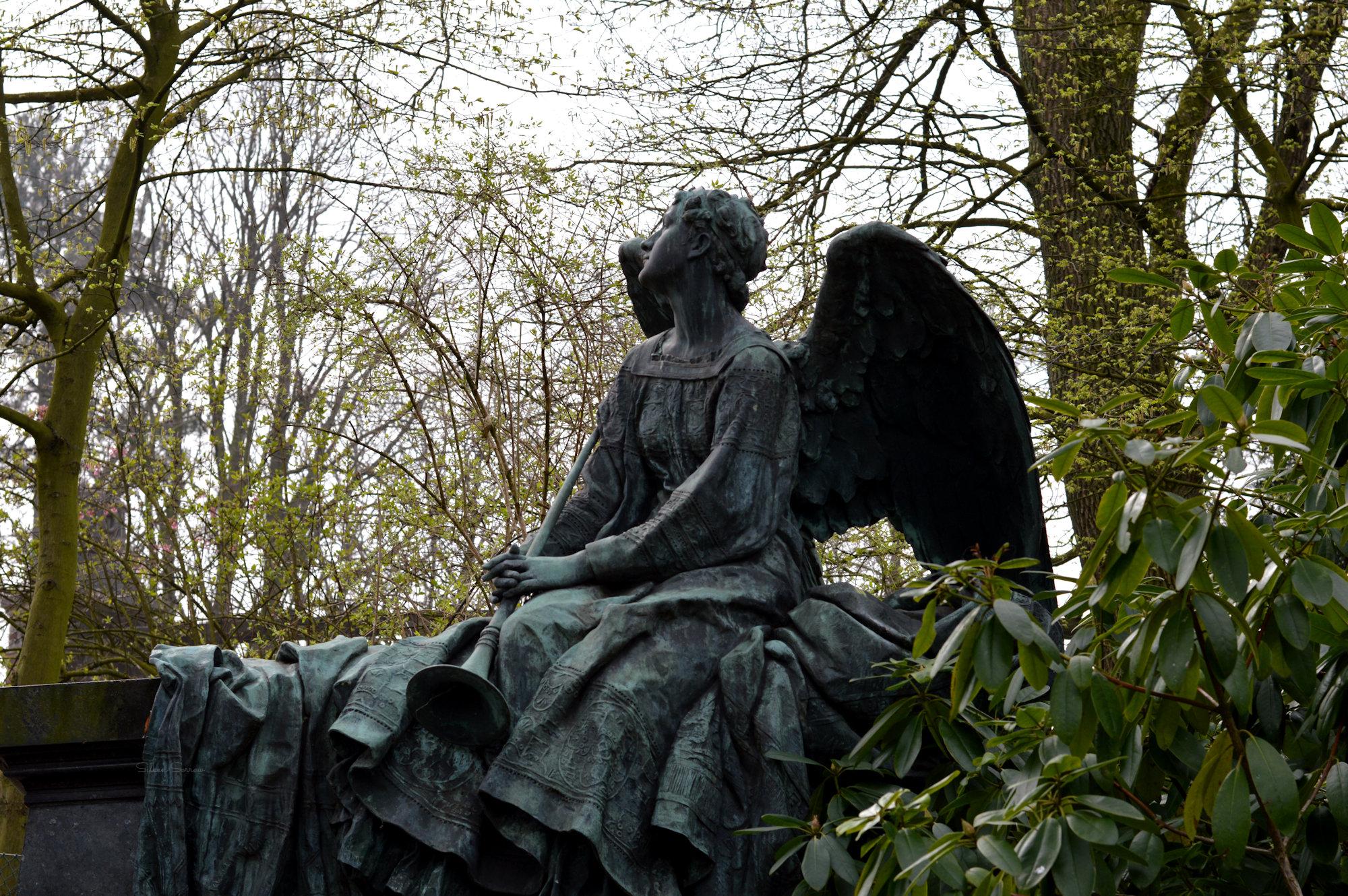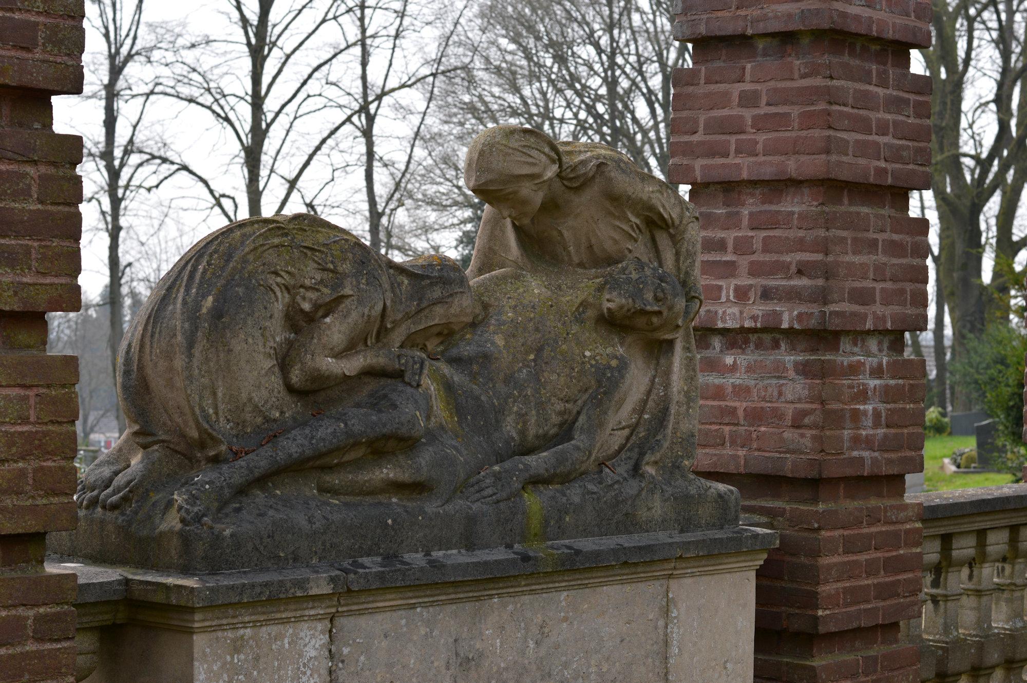 Soms zijn de minder bekende en kleinere begraafplaatsen bijzondere ontdekkingen. Tijdens een dagje Kleve besloten we op zoek te gaan naar een begraafplaats en kwamen bij de algemene Begraafplaats Kleve aan de Merowingerstraße uit. Er zijn een aantal bijzonder grote monumenten te vinden, ook beelden die meer dan levensgroot zijn en fotografisch enorm inspireerden. Bijzonder was ook het gesprek met een bezoeker, deze maakte zich zorgen om ons als fotografen omdat er (triest genoeg) al diverse keren graven geroofd waren. Deze dieven legden voor ze hun roofactie uitvoerden met een camera de te stelen objecten vast, en ik kan me dus al te goed indenken dat de bewuste bezoeker zich zorgen maakten toen hij ons met camera rond zag lopen. Gelukkig kon ik hem overtuigen, heb ook een link naar mij site gegeven, en daarna ontstond een mooi gesprek over de historische waarde van funerair erfgoed en hoe mooi (en vaak ook bijzonder) het is wanneer een gemeente zich daar bewust van is.